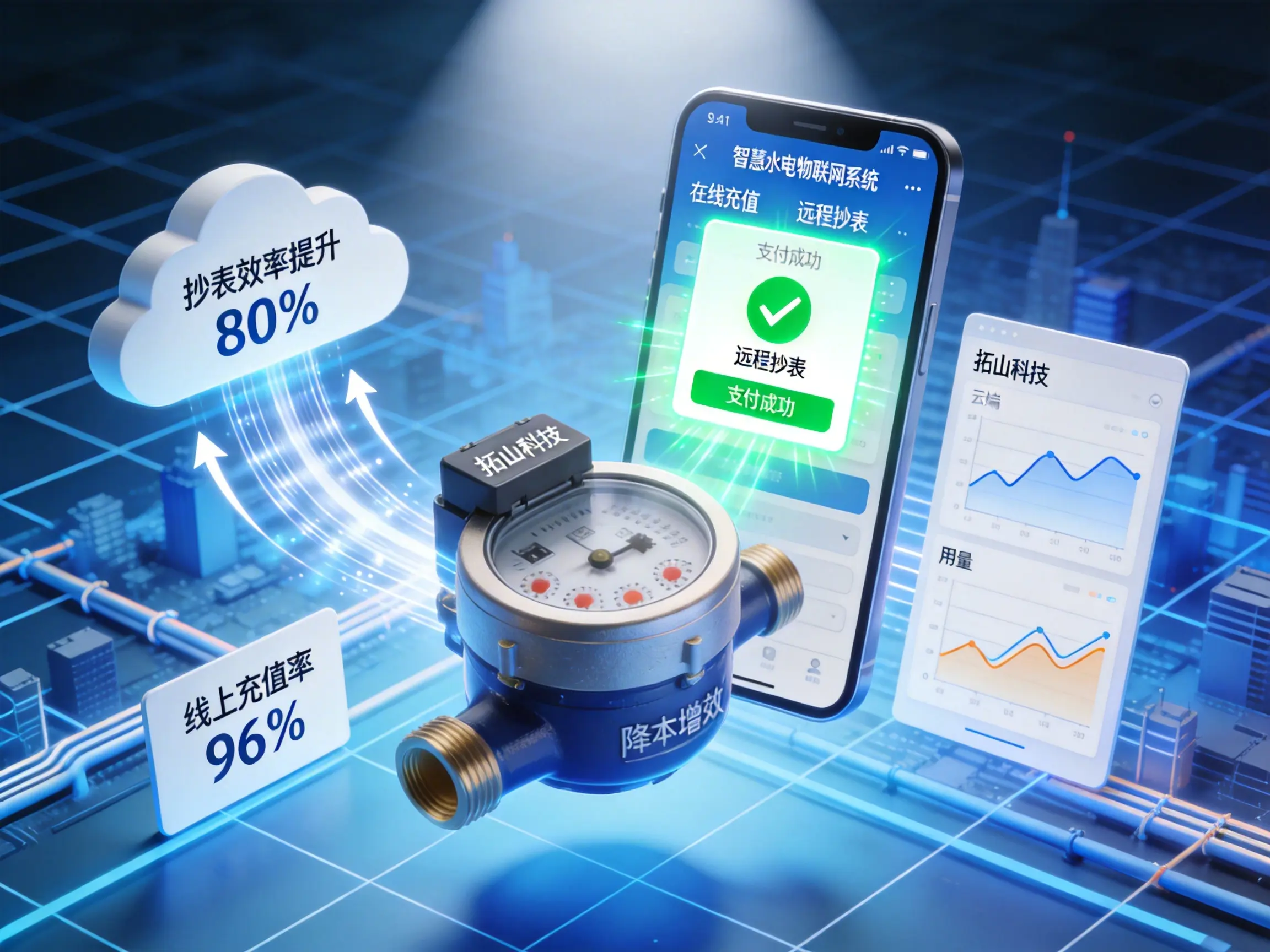 本文深度解析智慧水电物联网系统实现远程抄表与在线充值的核心技术,以拓山科技某市水务集团项目为例,展示如何通过软硬件集成提升 80% 抄表效率、95%+ 线上充值率。了解 11 年经验企业数字化解决方案如何助力降本 300 万 / 年!